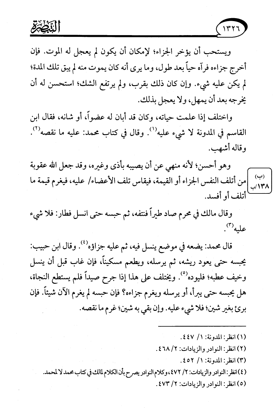 (¬5) انظر: النوادر والزيادات: 2/ 473.