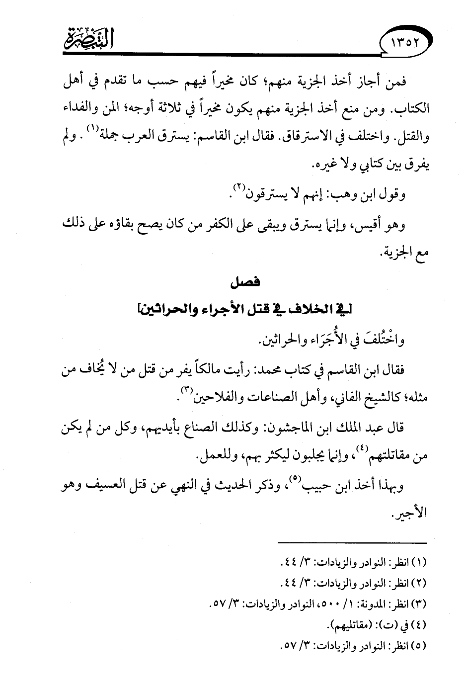 (¬5) انظر: النوادر والزيادات: 3/ 57.