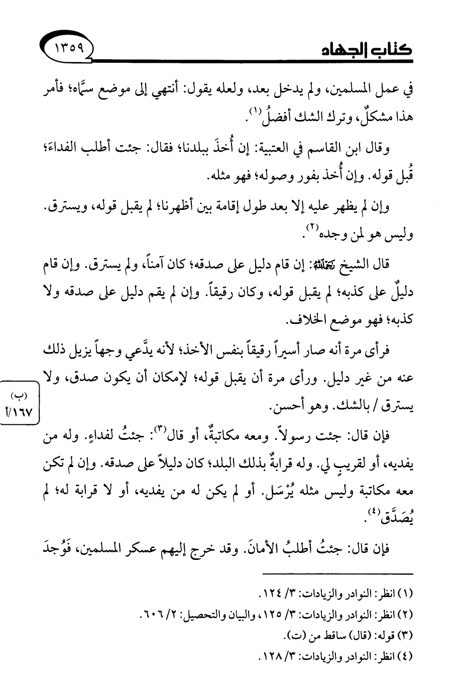 (¬4) انظر: النوادر والزيادات: 3/ 128.