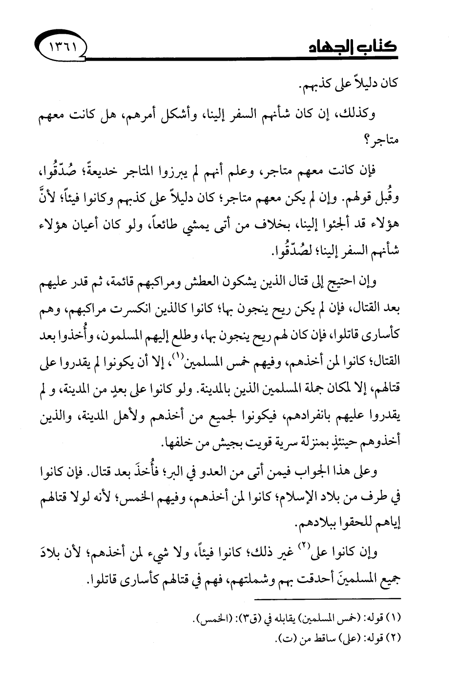 وإن احتيج إلى قتال الذين يشكون العطش ومراكبهم قائمة، ثم قدر عليهم بعد القتال، فإن لم يكن ريح ينجون بها، كانوا كالذين انكسرت مراكبهم، وهم كأسارى قاتلوا، فإن كان لهم ريح ينجون بها، وطلع إليهم المسلمون، وأُخذوا بعد القتال؛ كانوا لمن أخذهم، وفيهم خمس المسلمين (¬1)، إلا أن يكونوا لم يقدروا على قتالهم، إلا لمكان جملة المسلمين الذين بالمدينة. ولو كانوا على بعدٍ من المدينة، ولم يقدروا عليهم بانفرادهم، فيكونوا لجميع من أخذهم ولأهل الدينة، والذين أخذوهم حينئذٍ بمنزلة سرية قويت بجيش من خلفها.