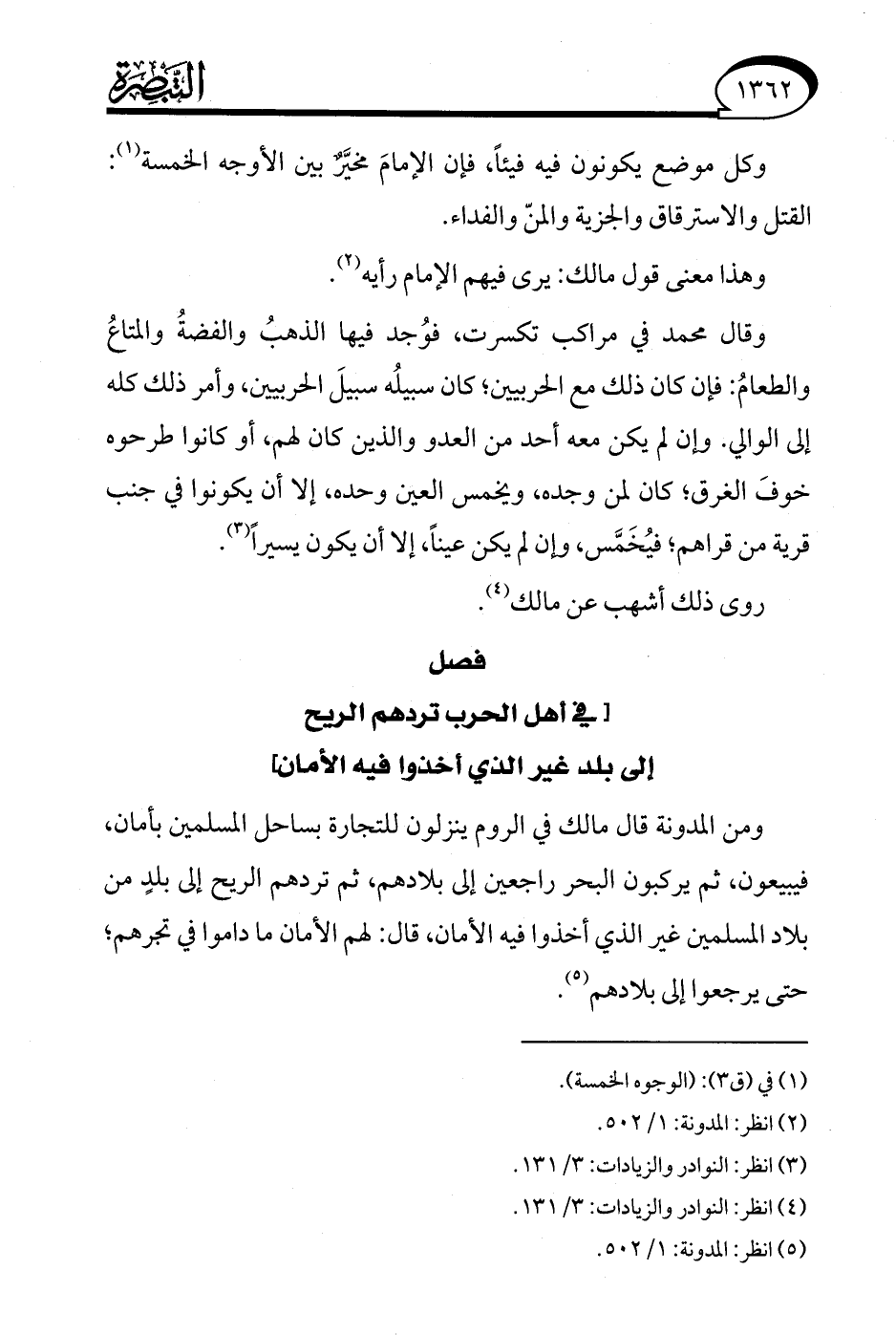 (¬3) انظر: النوادر والزيادات: 3/ 131.