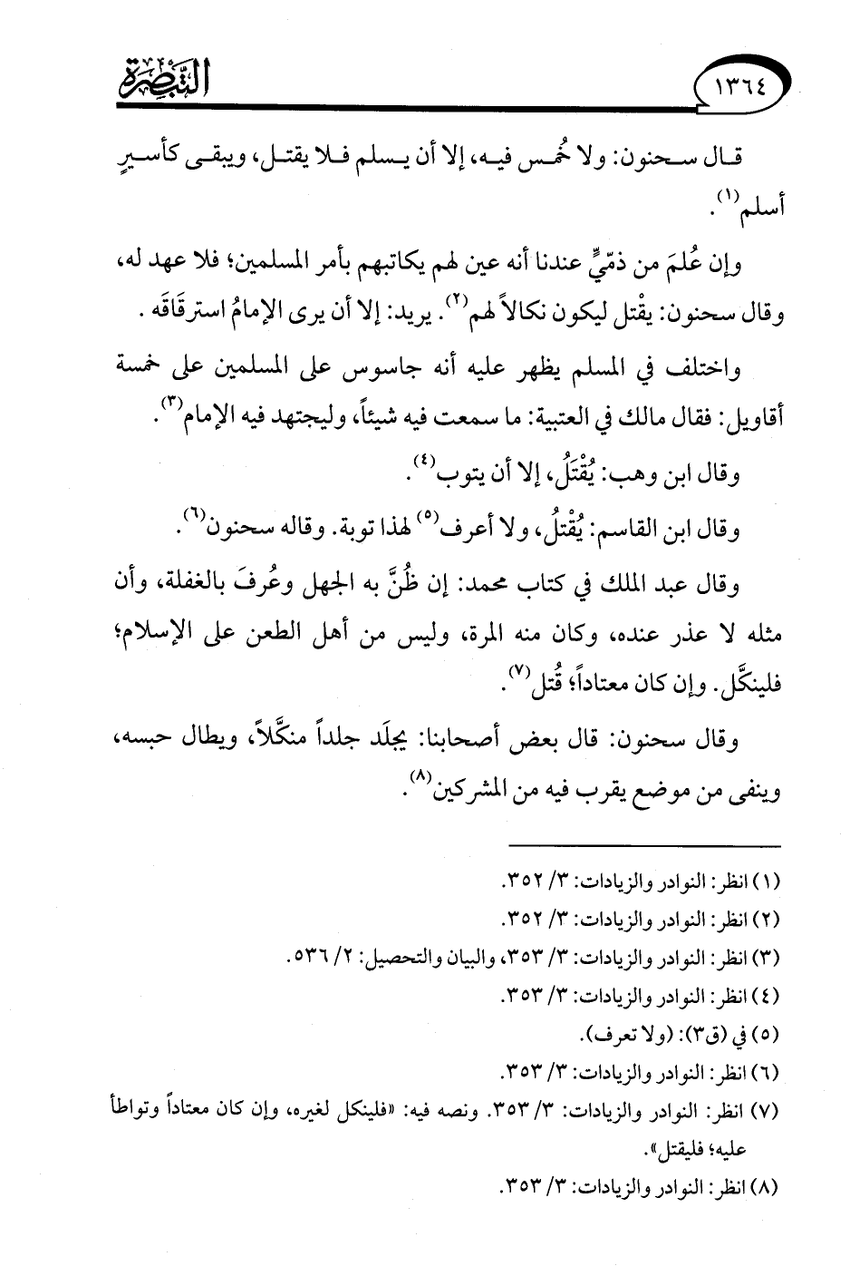 (¬8) انظر: النوادر والزيادات: 3/ 353.