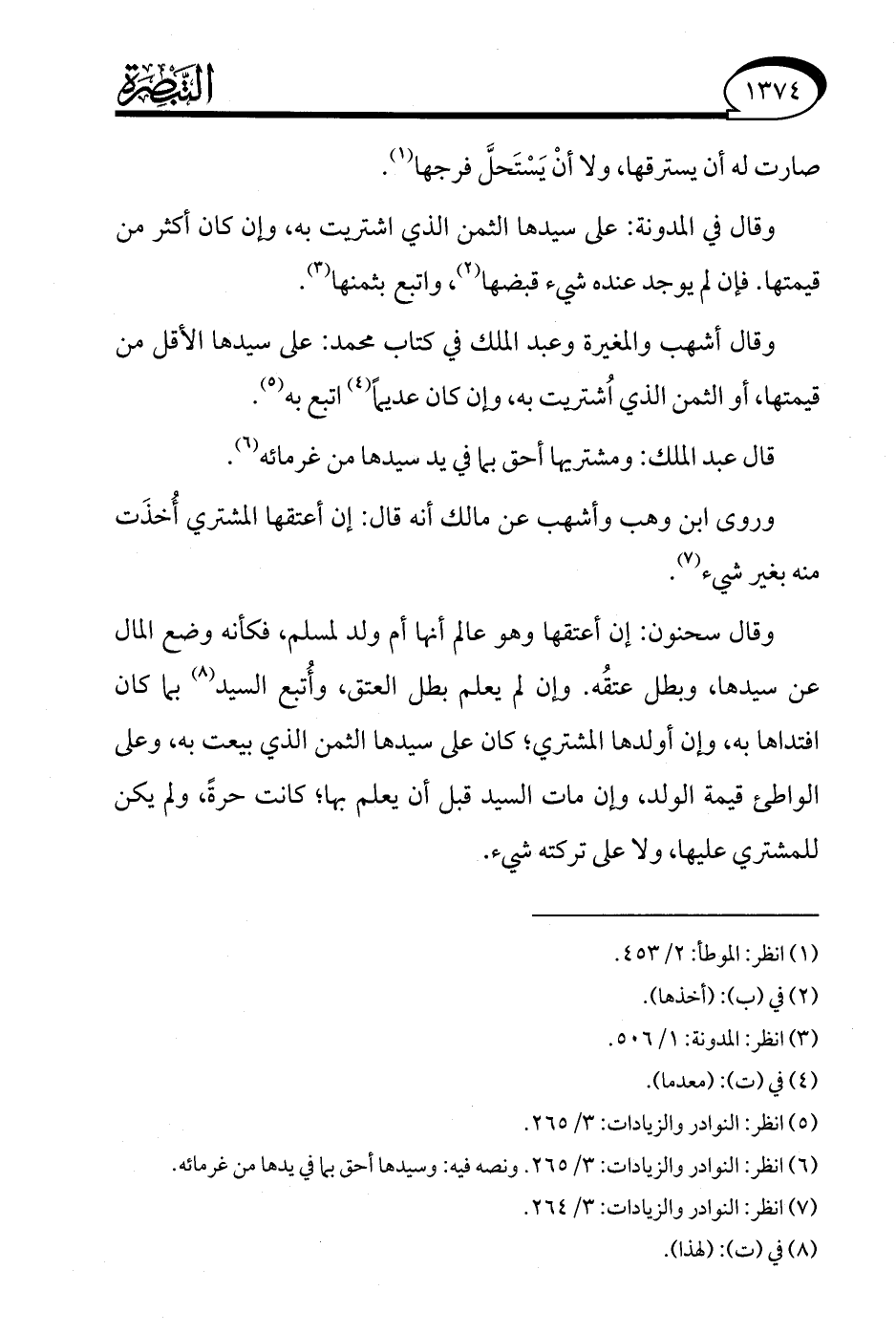 (¬7) انظر: النوادر والزيادات: 3/ 264.