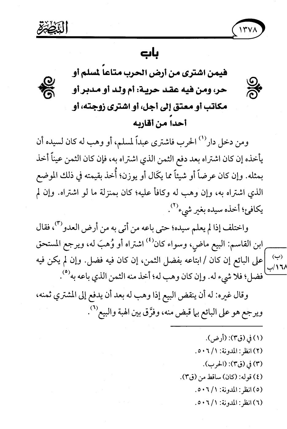 باب فيمن اشترى من أرض الحرب متاعًا لمسلم أو حر, ومن فيه عقد حرية: أم ولد أو مدبر أو مكاتب أو معتق إلى أجل، أو اشترى زوجته , أو أحدًا من أقاربه