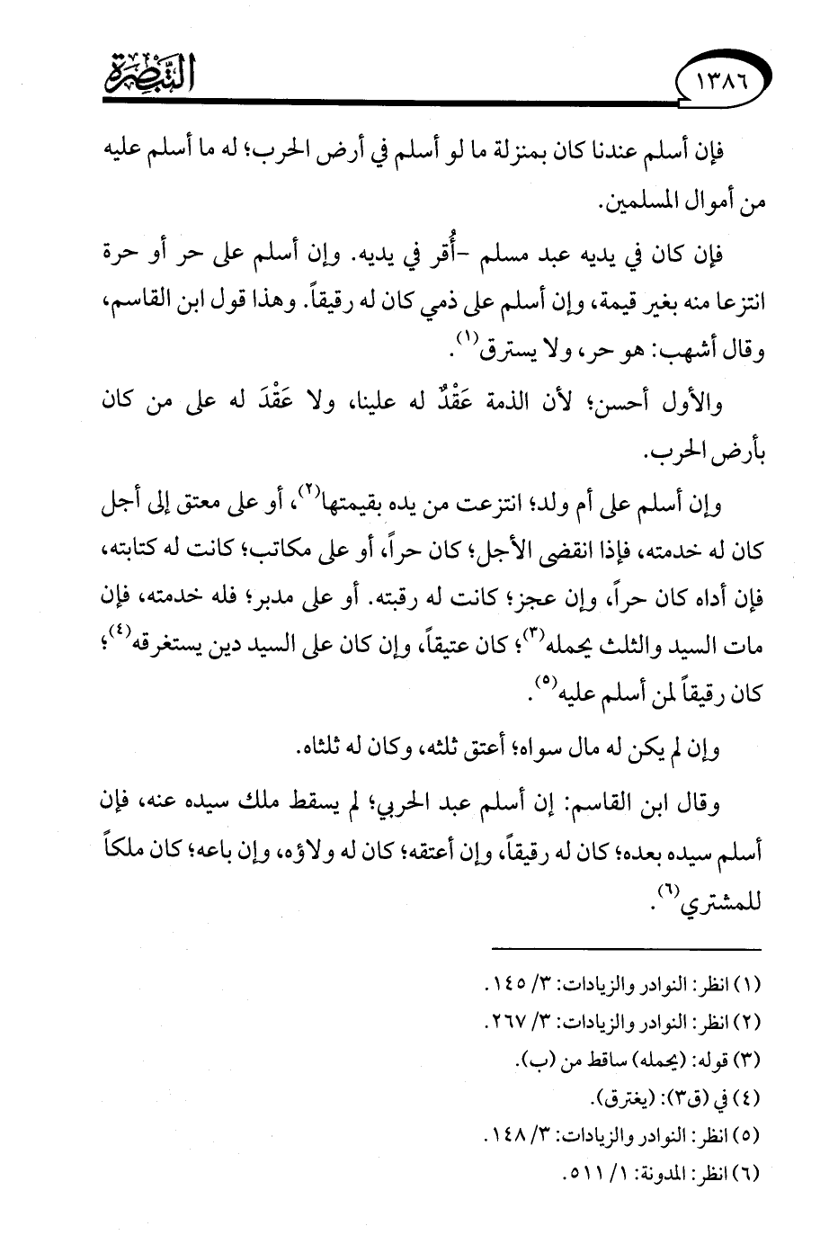 (¬5) انظر: النوادر والزيادات: 3/ 148.