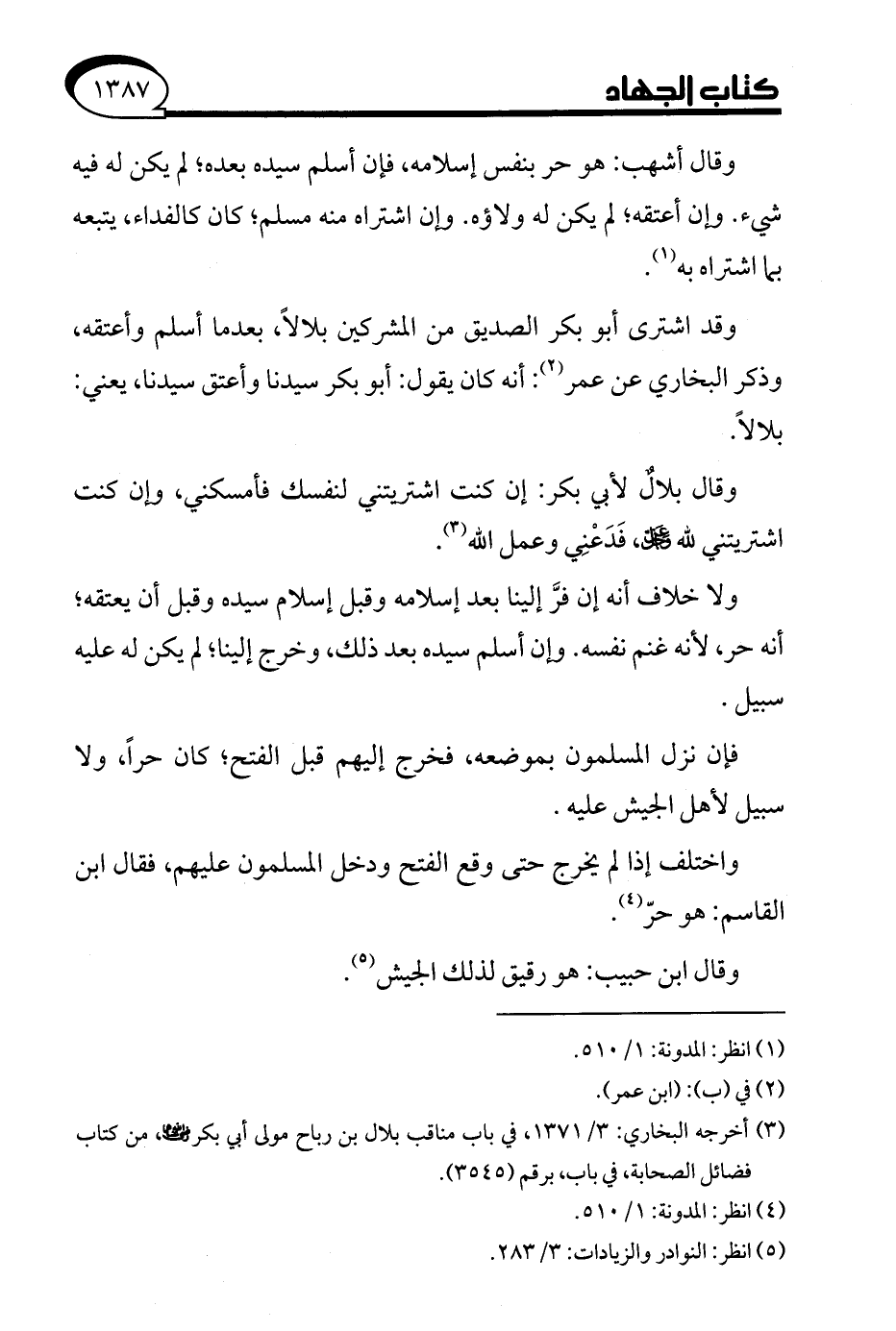 (¬5) انظر: النوادر والزيادات: 3/ 283.