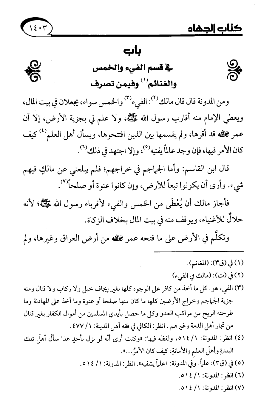 (¬7) انظر: المدونة: 1/ 514.