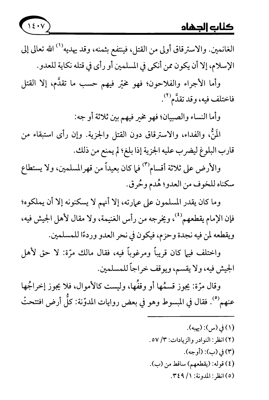 (¬5) انظر: المدونة: 1/ 349.