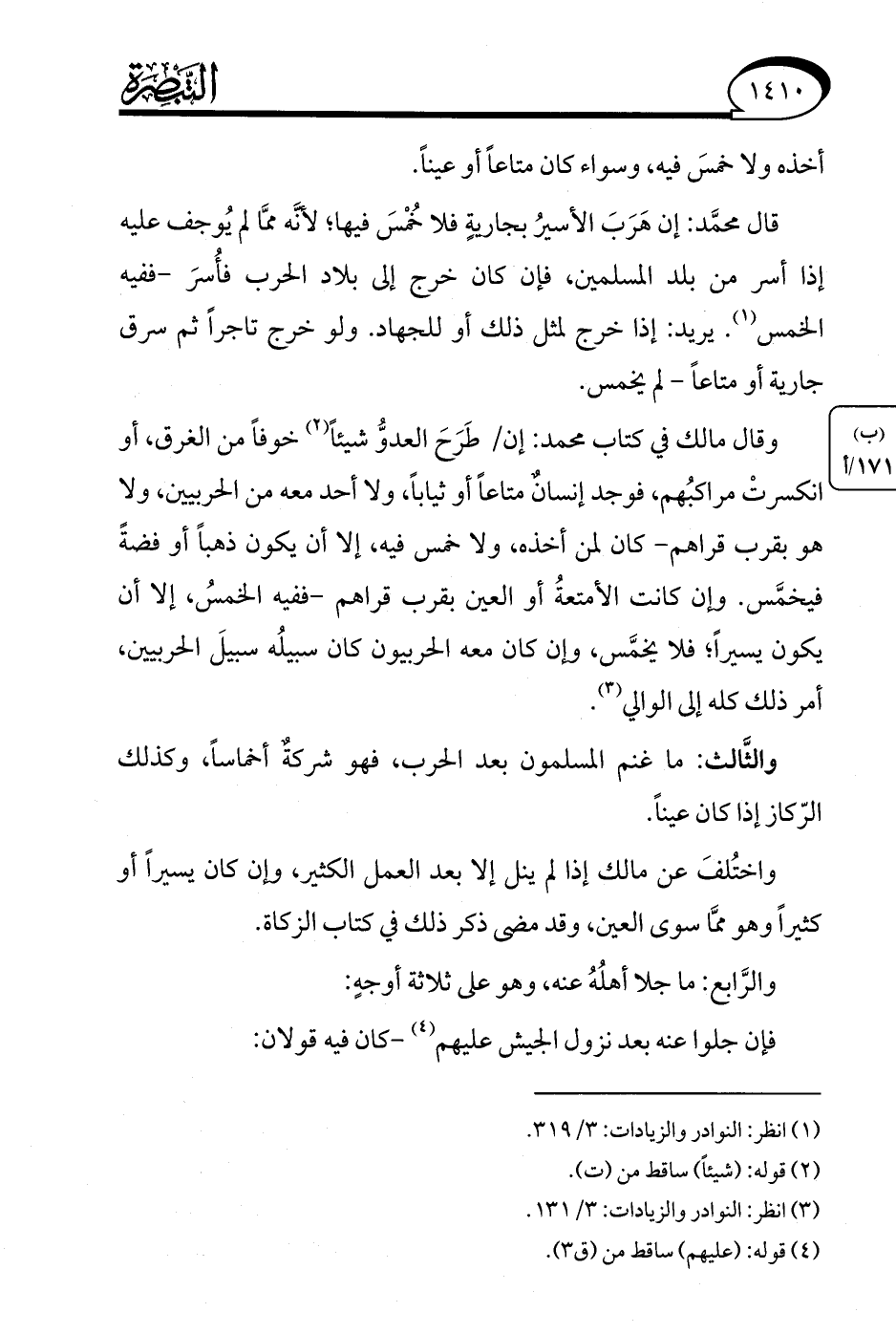 (¬3) انظر: النوادر والزيادات: 3/ 131.