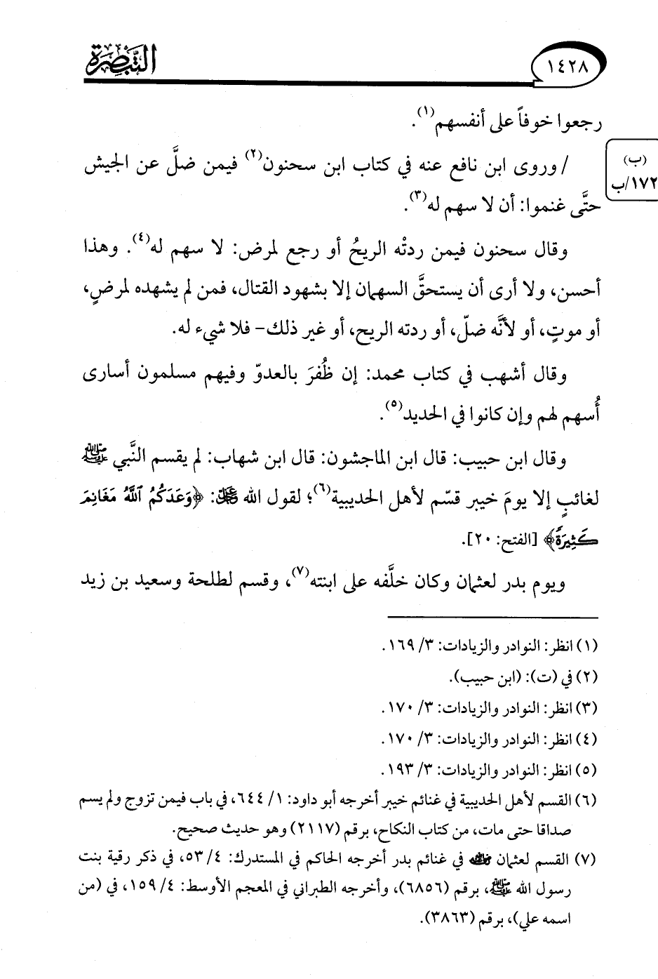(¬3) انظر: النوادر والزيادات: 3/ 170.