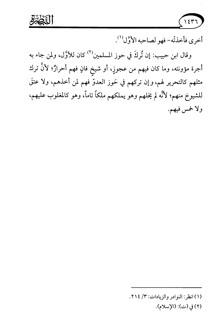 (¬1) انظر: النوادر والزيادات: 3/ 214.
