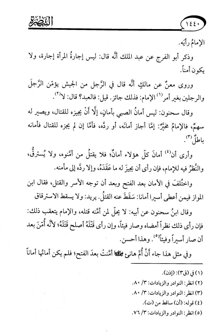 (¬5) انظر: النوادر والزيادات: 3/ 76.