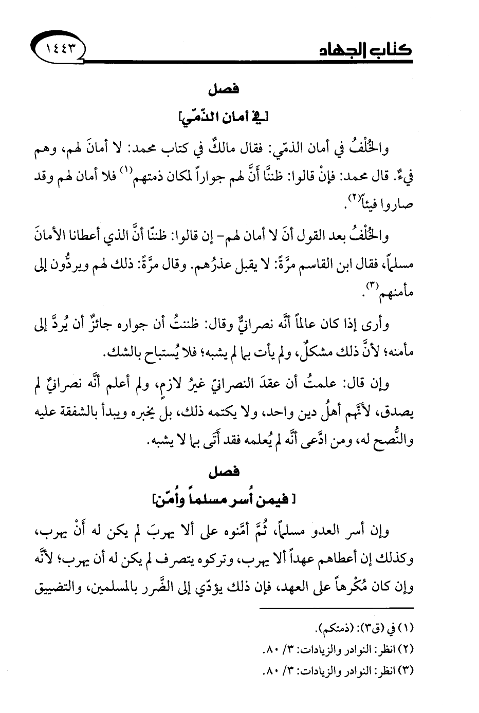 (¬3) انظر: النوادر والزيادات: 3/ 80.
