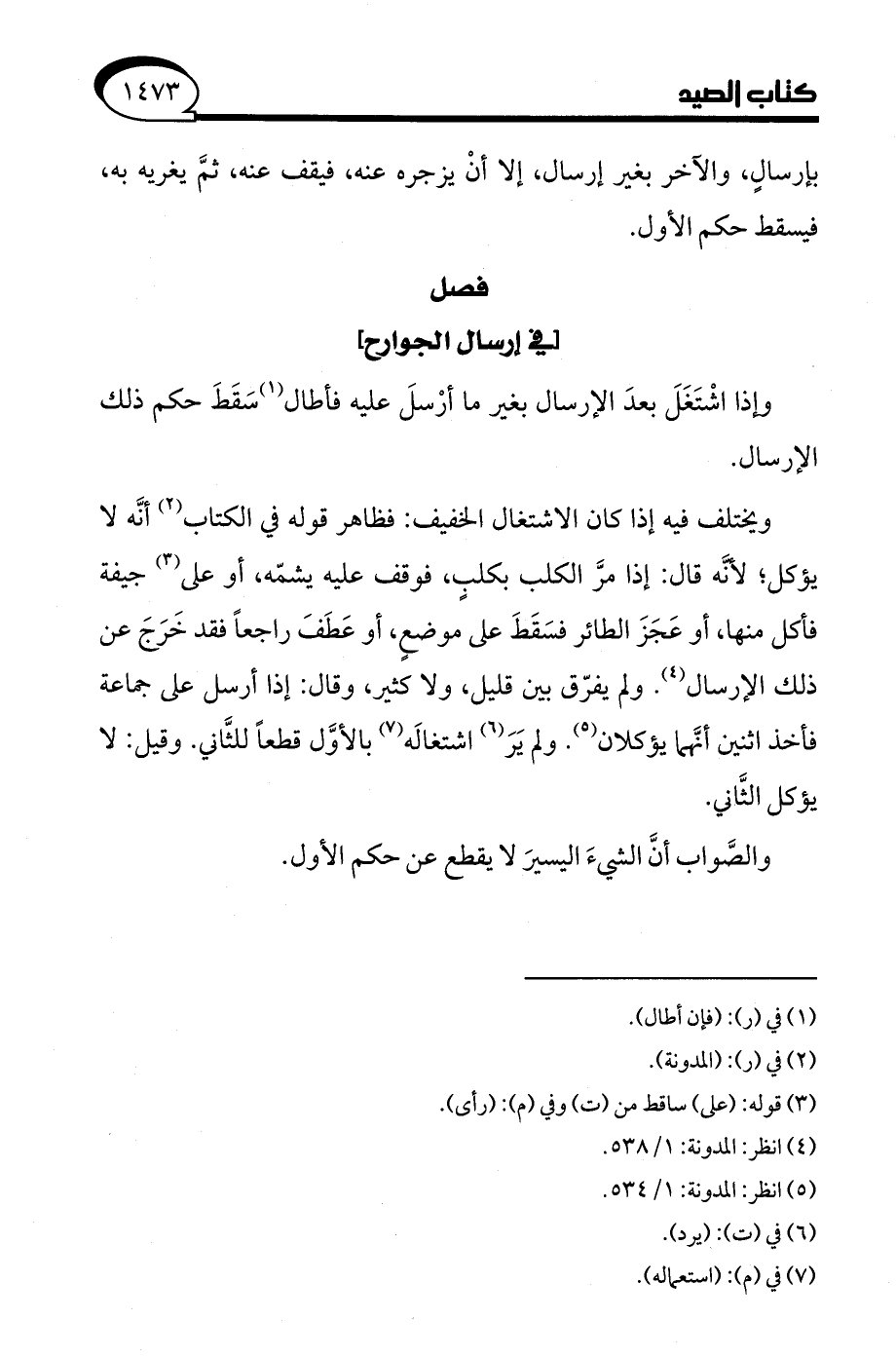 ويختلف فيه إذا كان الاشتغال الخفيف: فظاهر قوله في الكتاب (¬2) أنَّه لا يؤكل؛ لأنَّه قال: إذا مرَّ الكلب بكلبٍ، فوقف عليه يشمّه، أو على (¬3) جيفة فأكل منها، أو عَجَزَ الطائر فسَقَطَ على موضعٍ، أو عَطَفَ راجعًا فقد خَرَجَ عن ذلك الإرسال (¬4). ولم يفرّق بين قليل، ولا كثير، وقال: إذا أرسل على جماعة فأخذ اثنين أنَّهما يؤكلان (¬5). ولم يَرَ (¬6) اشتغالَه (¬7) بالأوَّل قطعًا للثَّاني. وقيل: لا يؤكل الثَّاني.