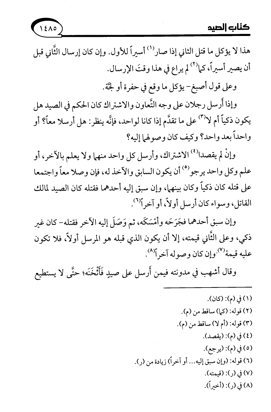 وقال أشهب في مدونته فيمن أَرسل على صيدٍ فَأثخَنَه؛ حتَّى لا يستطيع
