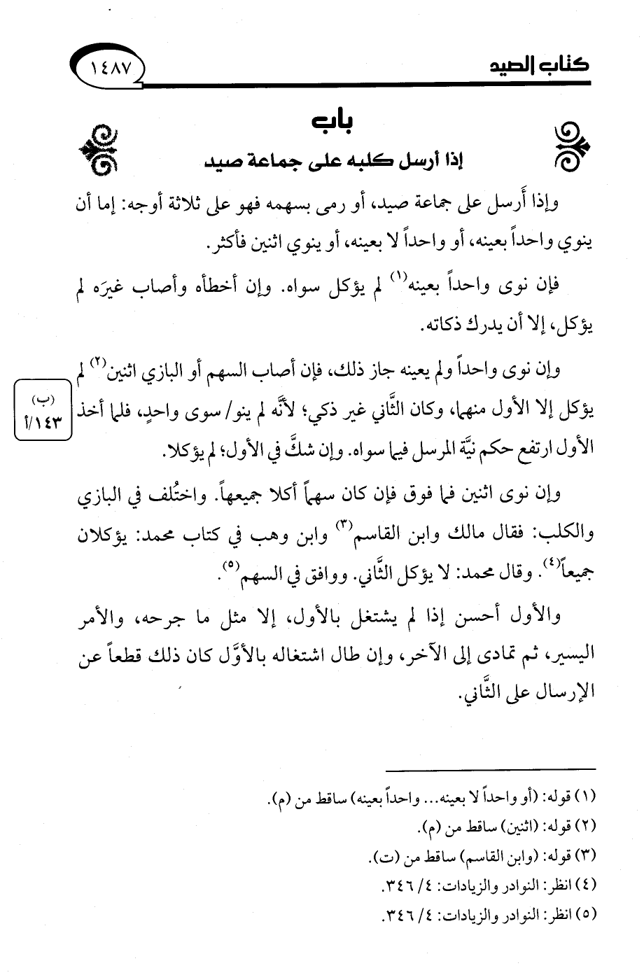 (¬5) انظر: النوادر والزيادات: 4/ 346.