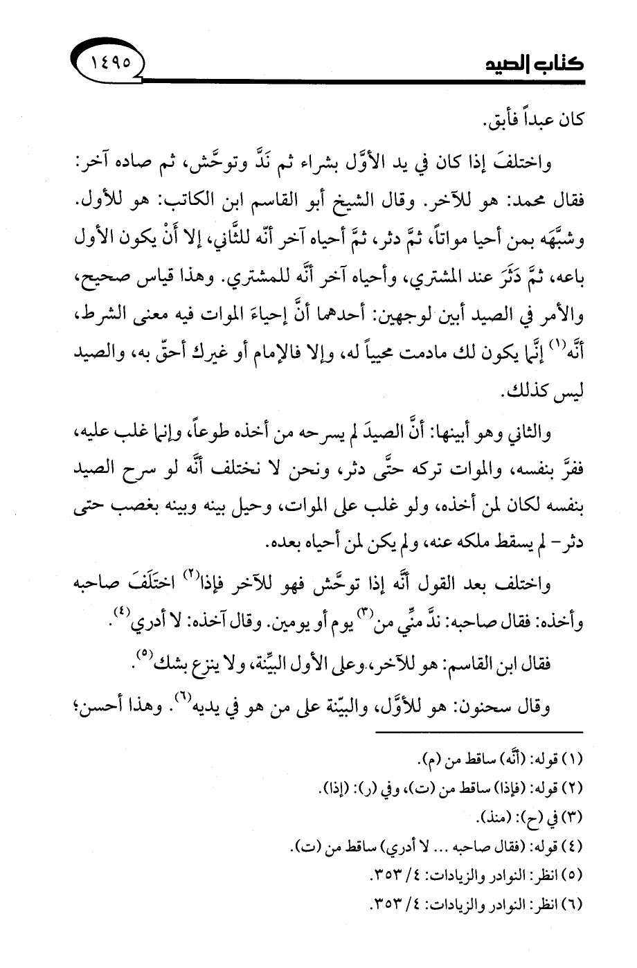 (¬6) انظر: النوادر والزيادات: 4/ 353.