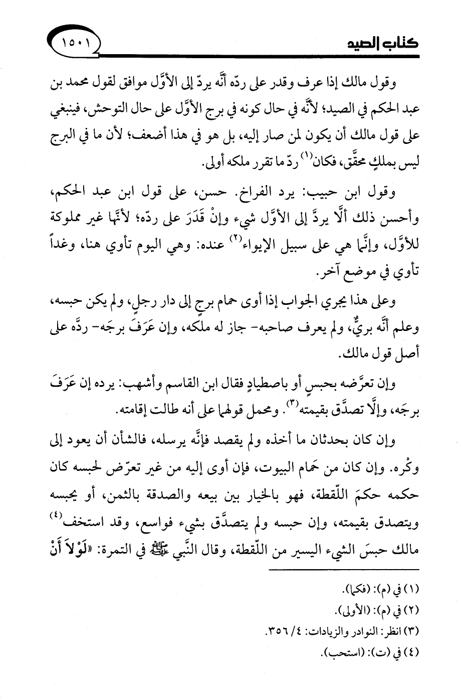 (¬3) انظر: النوادر والزيادات: 4/ 356.
