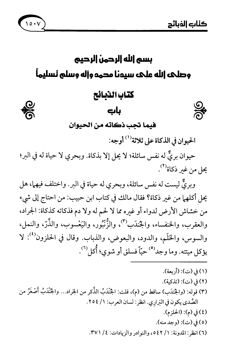 (¬6) انظر: المدونة: 1/ 542، والنوادر والزيادات: 4/ 371.