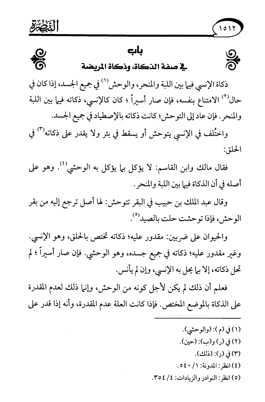 (¬5) انظر: النوادر والزيادات: 4/ 354.