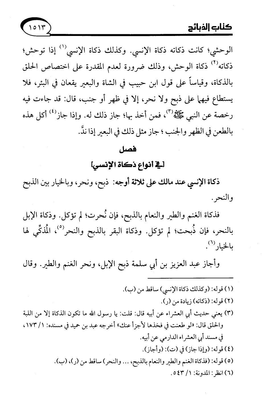 (¬1) قوله: (وكذلك ذكاة الإنسي) ساقط من (ب).