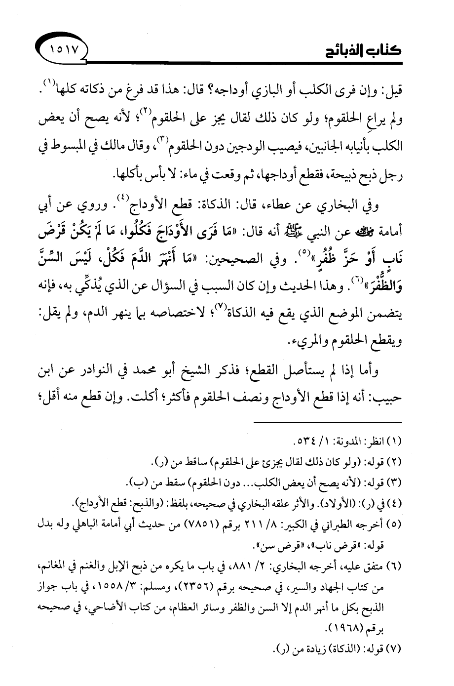 (¬7) قوله: (الذكاة) زيادة من (ر).