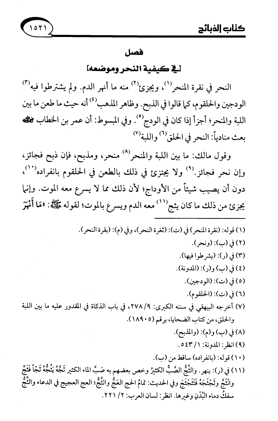 (¬7) أخرجه البيهقي في سننه الكبرى: 9/ 278، في باب الذكاة في المقدور عليه ما بين اللبة والحلق، من كتاب الضحايا، برقم (18905).