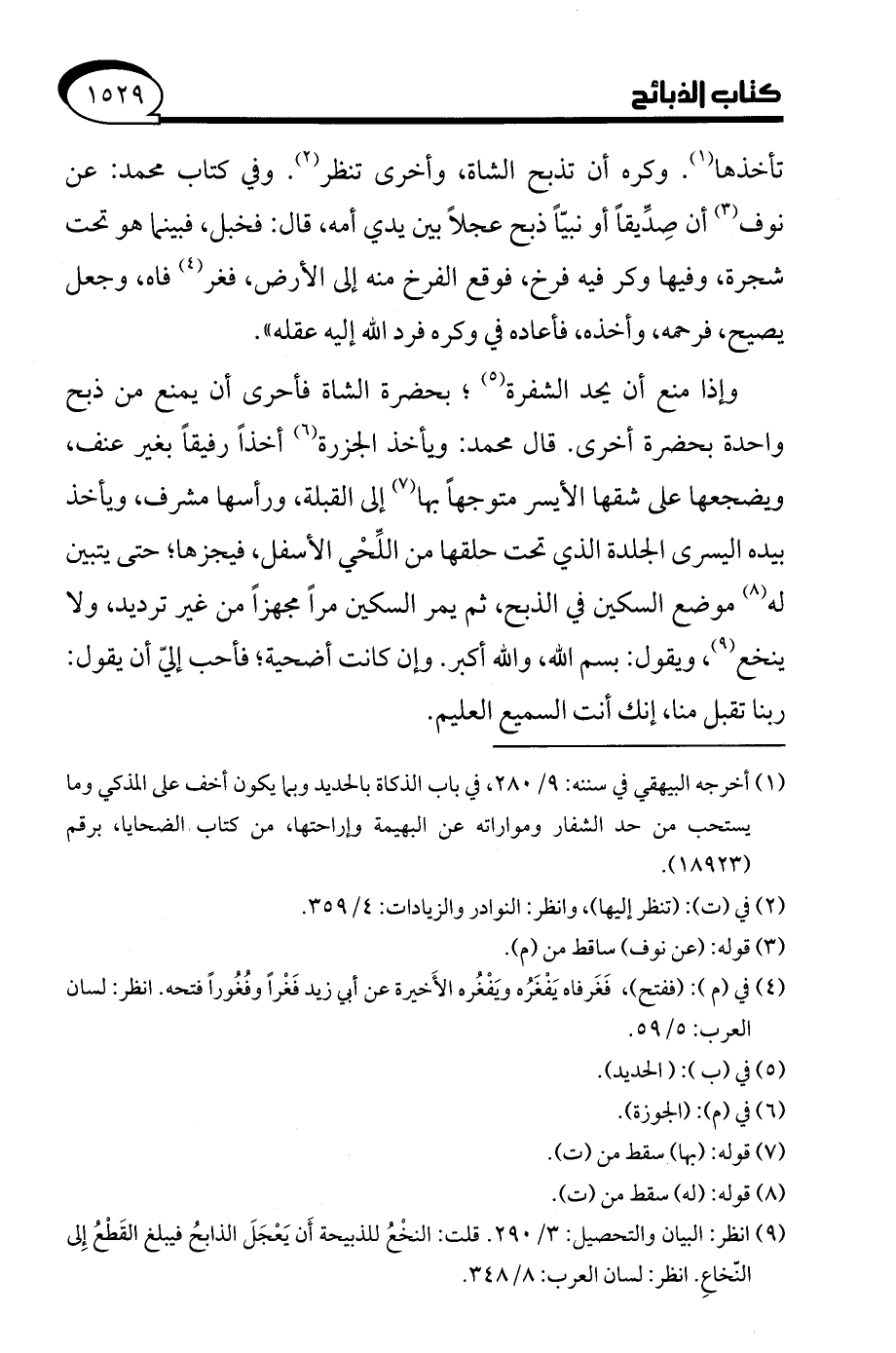 (¬9) انظر: البيان والتحصيل: 3/ 290. قلت: النخْعُ للذبيحة أَن يَعْجَلَ الذابحُ فيبلغ القَطْعُ إِلى النّخاعِ. انظر: لسان العرب: 8/ 348.