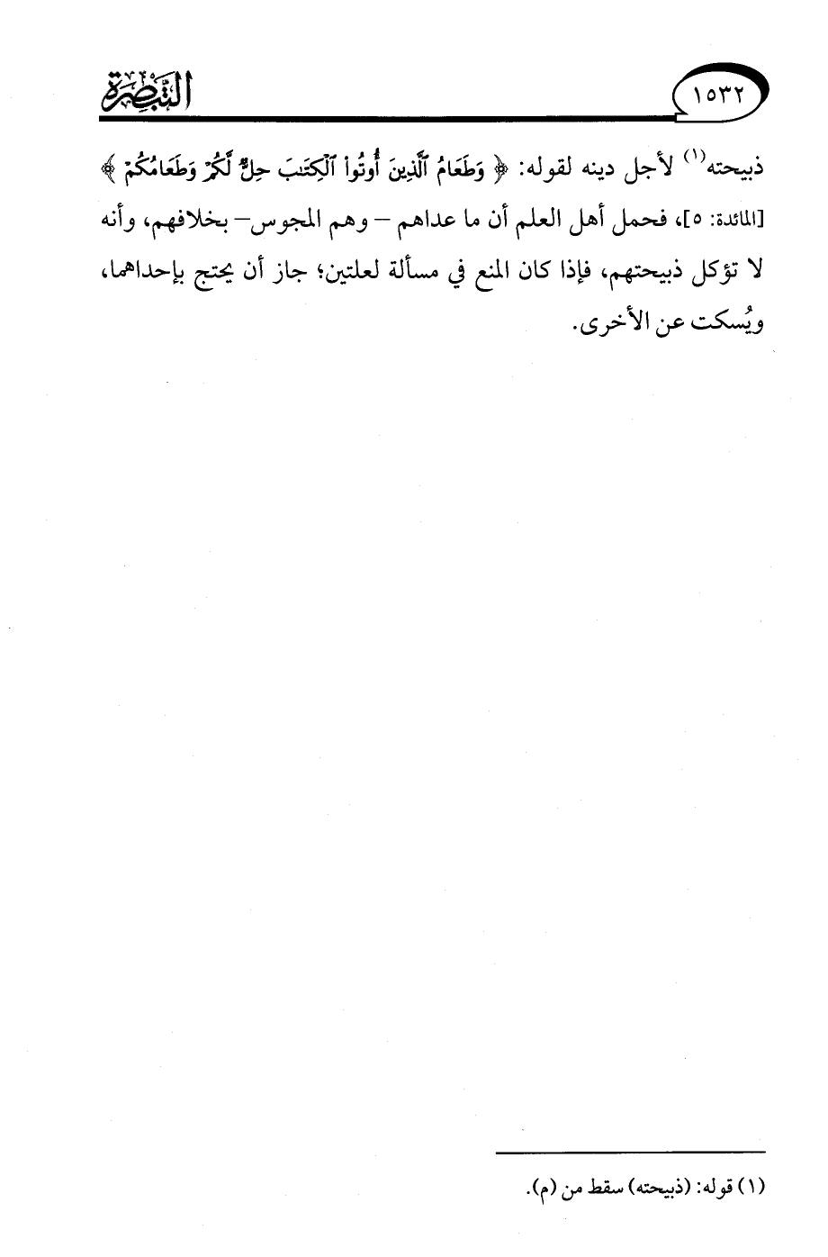 (¬1) قوله: (ذبيحته) سقط من (م).