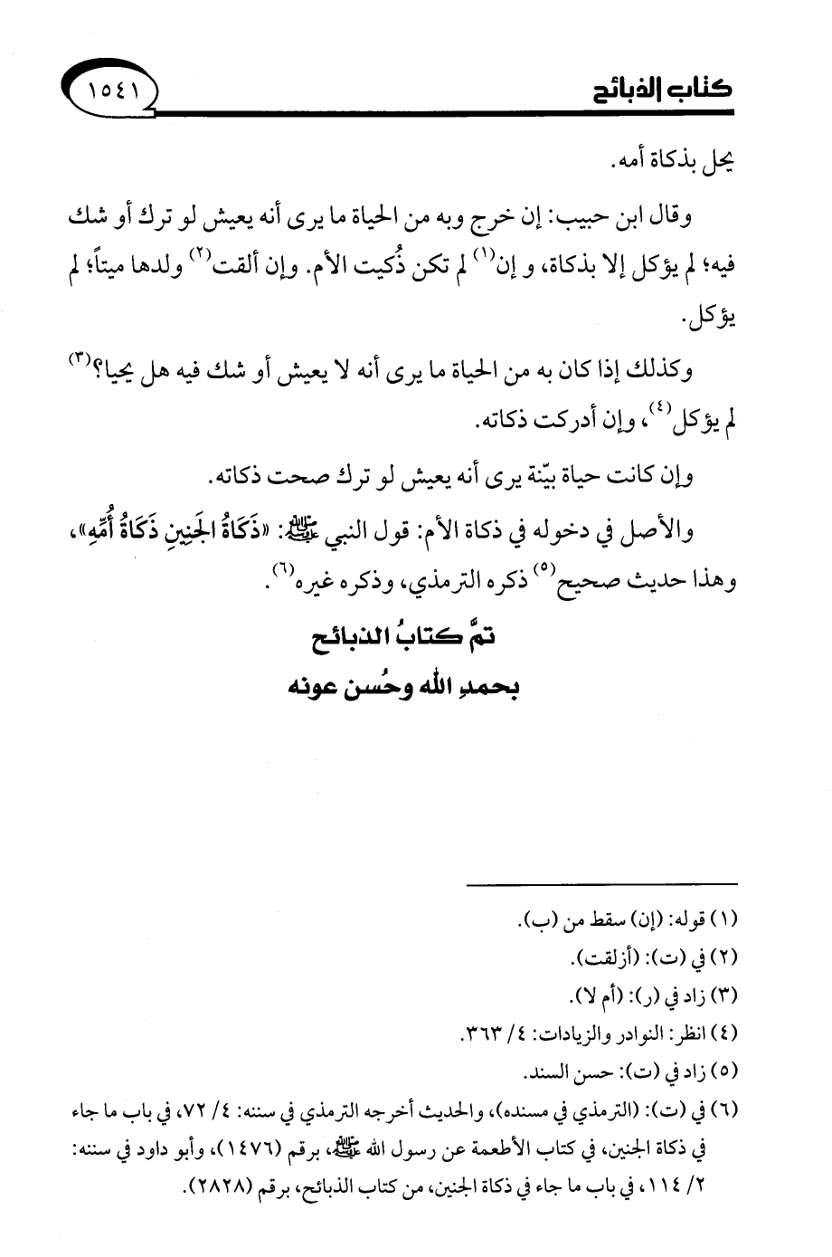 (¬6) في (ت): (الترمذي في مسنده)، والحديث أخرجه الترمذي في سننه: 4/ 72، في باب ما جاء في ذكاة الجنين، في كتاب الأطعمة عن رسول الله - صلى الله عليه وسلم -، برقم (1476)، وأبو داود في سننه: 2/ 114، في باب ما جاء في ذكاة الجنين، من كتاب الذبائح، برقم (2828).