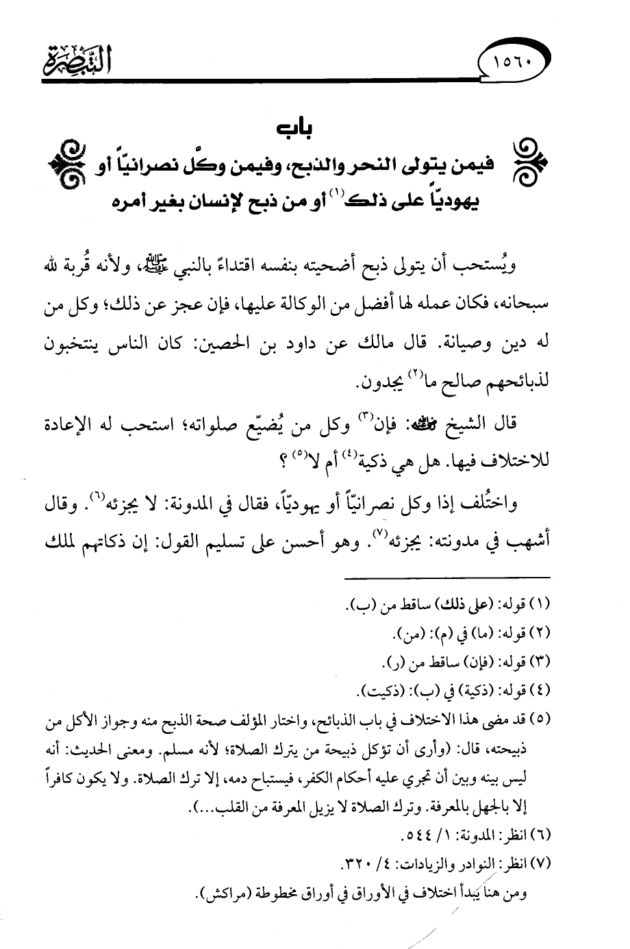 (¬7) انظر: النوادر والزيادات: 4/ 320.