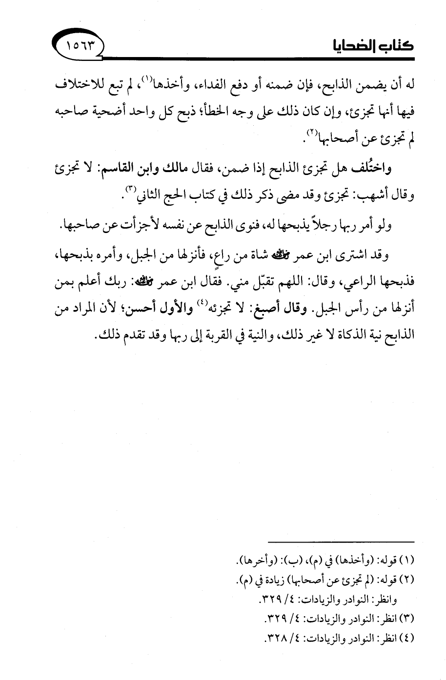 (¬4) انظر: النوادر والزيادات: 4/ 328.