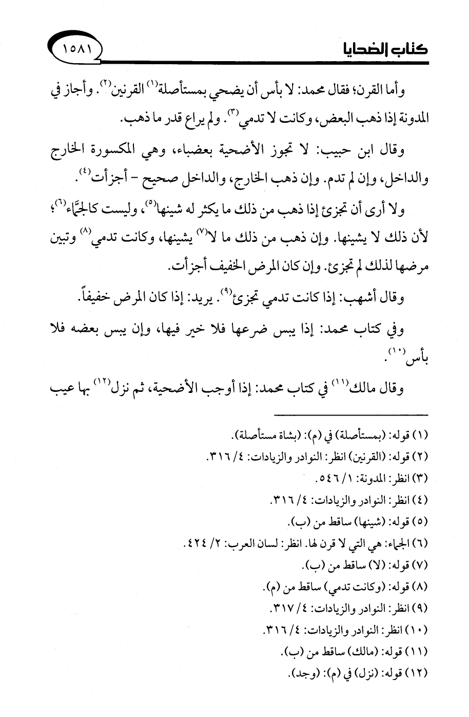 (¬2) قوله: (القرنين) انظر: النوادر والزيادات: 4/ 316.