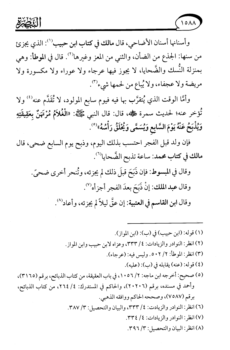 (¬8) انظر: البيان والتحصيل: 3/ 396.