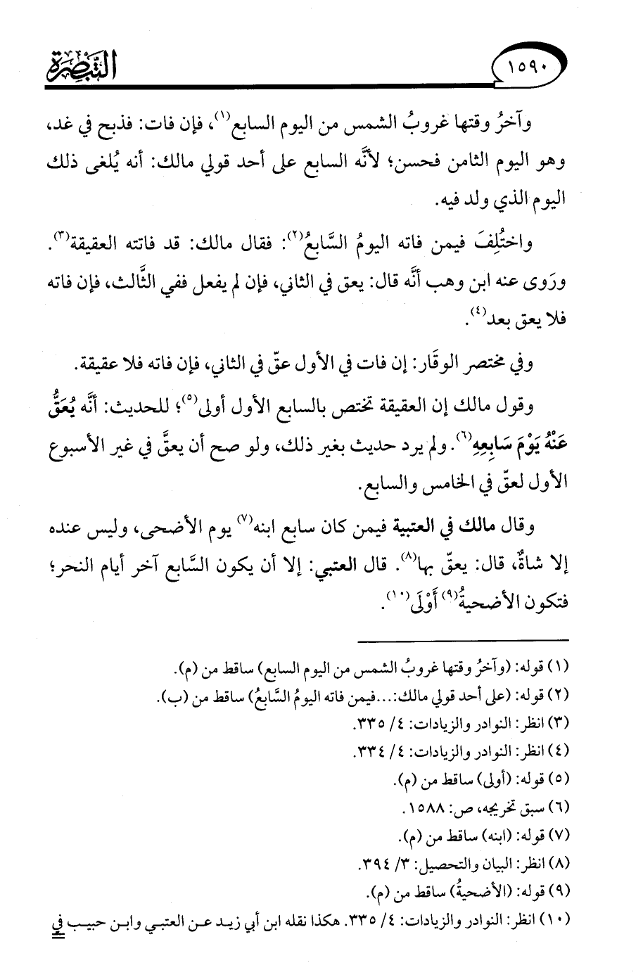 (¬10) انظر: النوادر والزيادات: 4/ 335. هكذا نقله ابن أبي زيد عن العتبي وابن حبيب في =