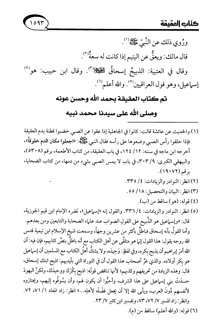 تم كتاب العقيقة بحمد الله وحسن عونه