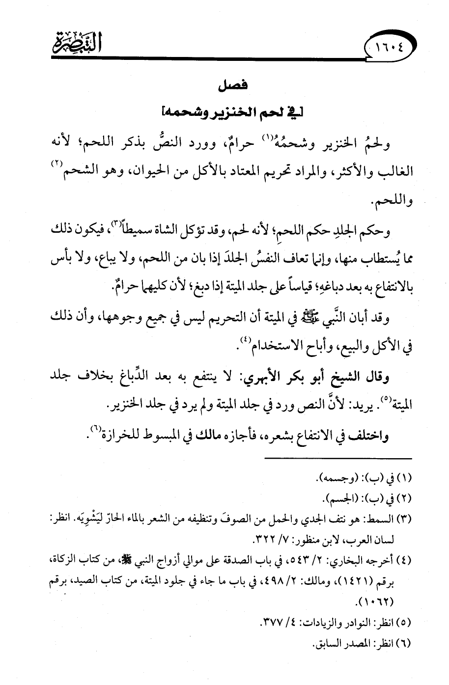 فصل [في لحم الخنزير وشحمه]