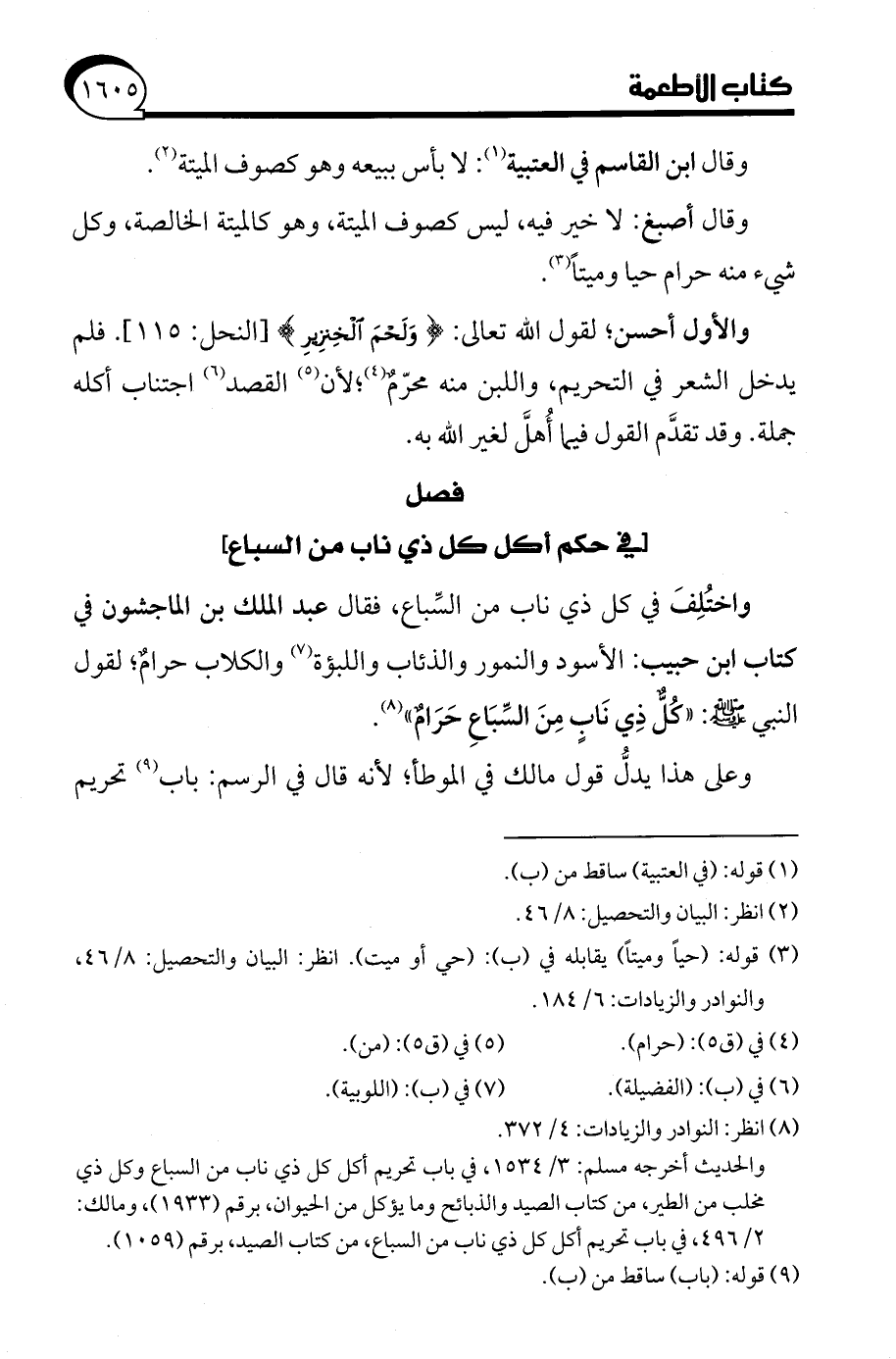 (¬2) انظر: البيان والتحصيل: 8/ 46.
