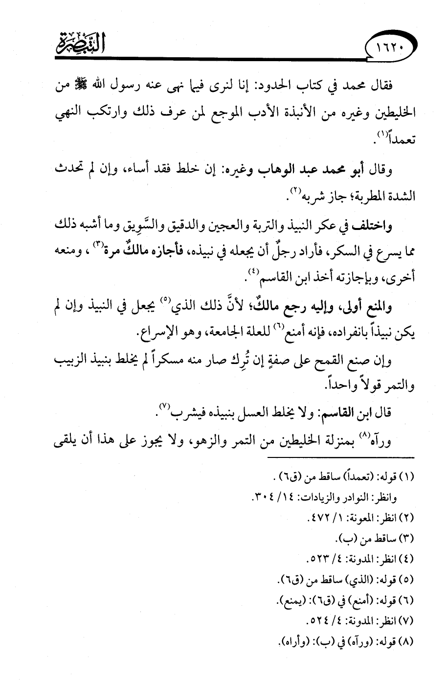 وقال أبو محمد عبد الوهاب وغيره: إن خلط فقد أساء، وإن لم تحدث الشدة المطربة؛ جاز شربه (¬2).