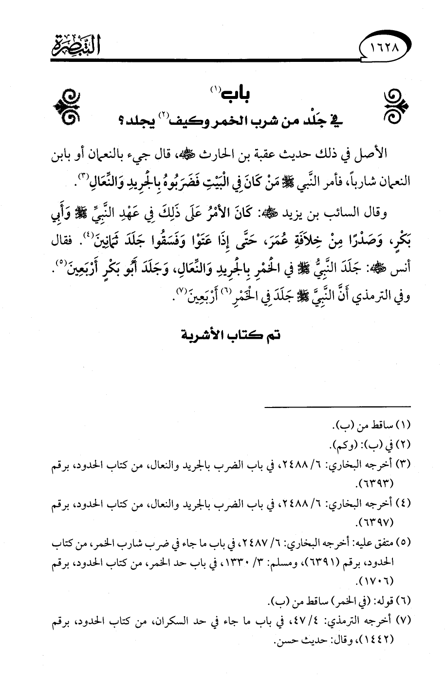 (¬4) أخرجه البخاري: 6/ 2488، في باب الضرب بالجريد والنعال، من كتاب الحدود، برقم (6397).
