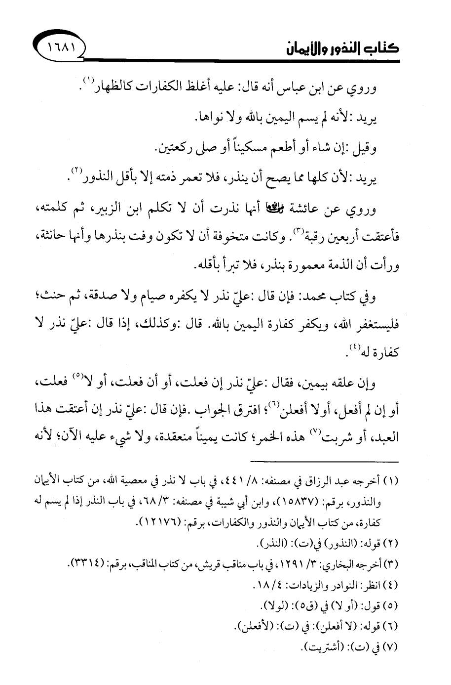 (¬1) أخرجه عبد الرزاق في مصنفه: 8/ 441، في باب لا نذر في معصية الله، من كتاب الأيمان والنذور، برقم: (15837)، وابن أبي شيبة في مصنفه: 3/ 68، في باب النذر إذا لم يسم له كفارة، من كتاب الأيمان والنذور والكفارات، برقم: (12176).