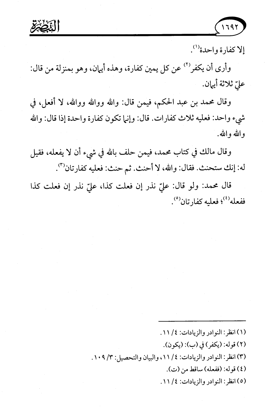(¬5) انظر: النوادر والزيادات: 4/ 11.