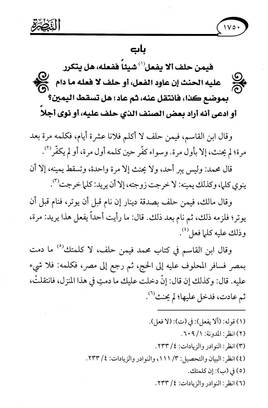 (¬4) انظر: البيان والتحصيل: 3/ 111، والنوادر والزيادات: 4/ 233.