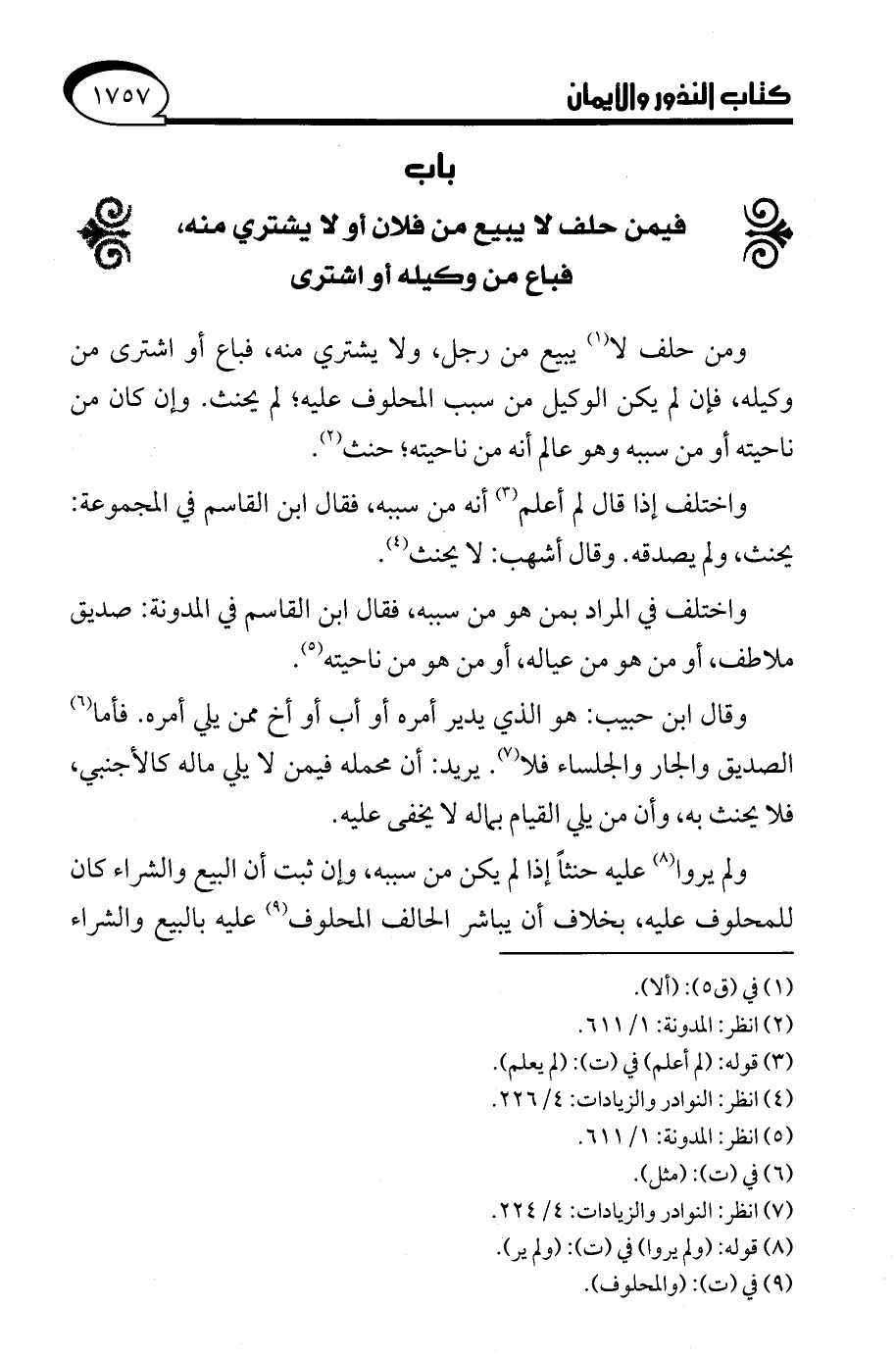 (¬7) انظر: النوادر والزيادات: 4/ 224.