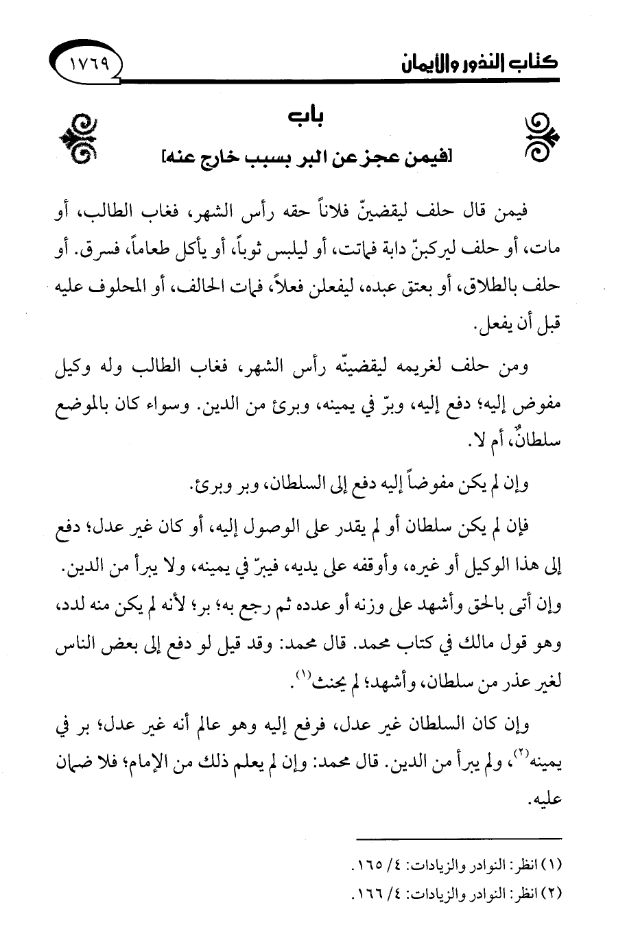 (¬2) انظر: النوادر والزيادات: 4/ 166.