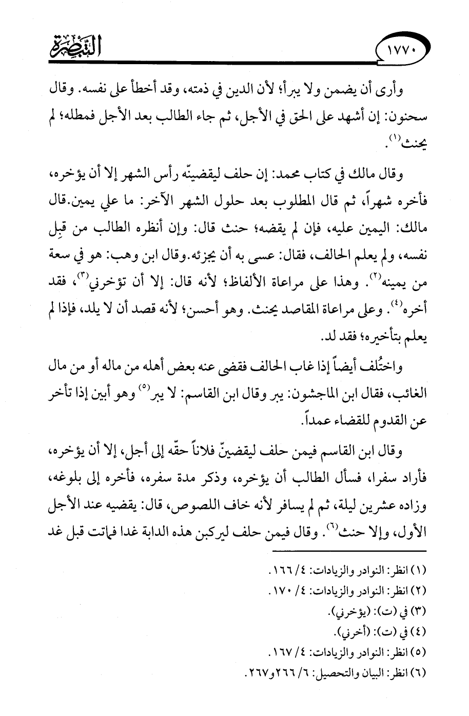 (¬2) انظر: النوادر والزيادات: 4/ 170.