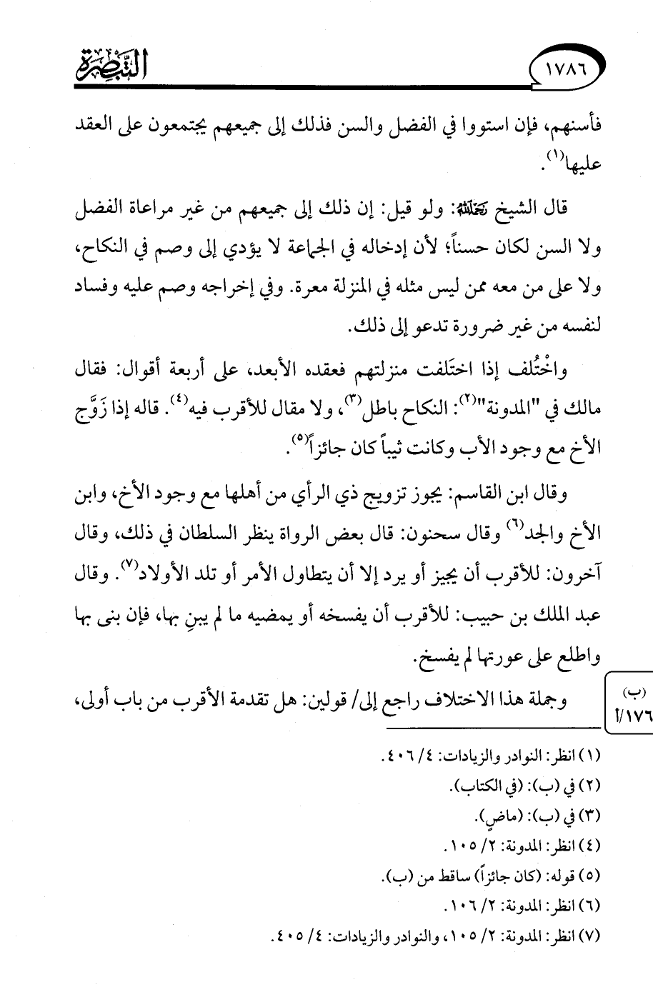 (¬7) انظر: المدونة: 2/ 105، والنوادر والزيادات: 4/ 405.