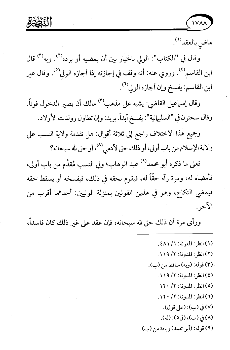 (¬6) انظر: المدونة: 2/ 120.