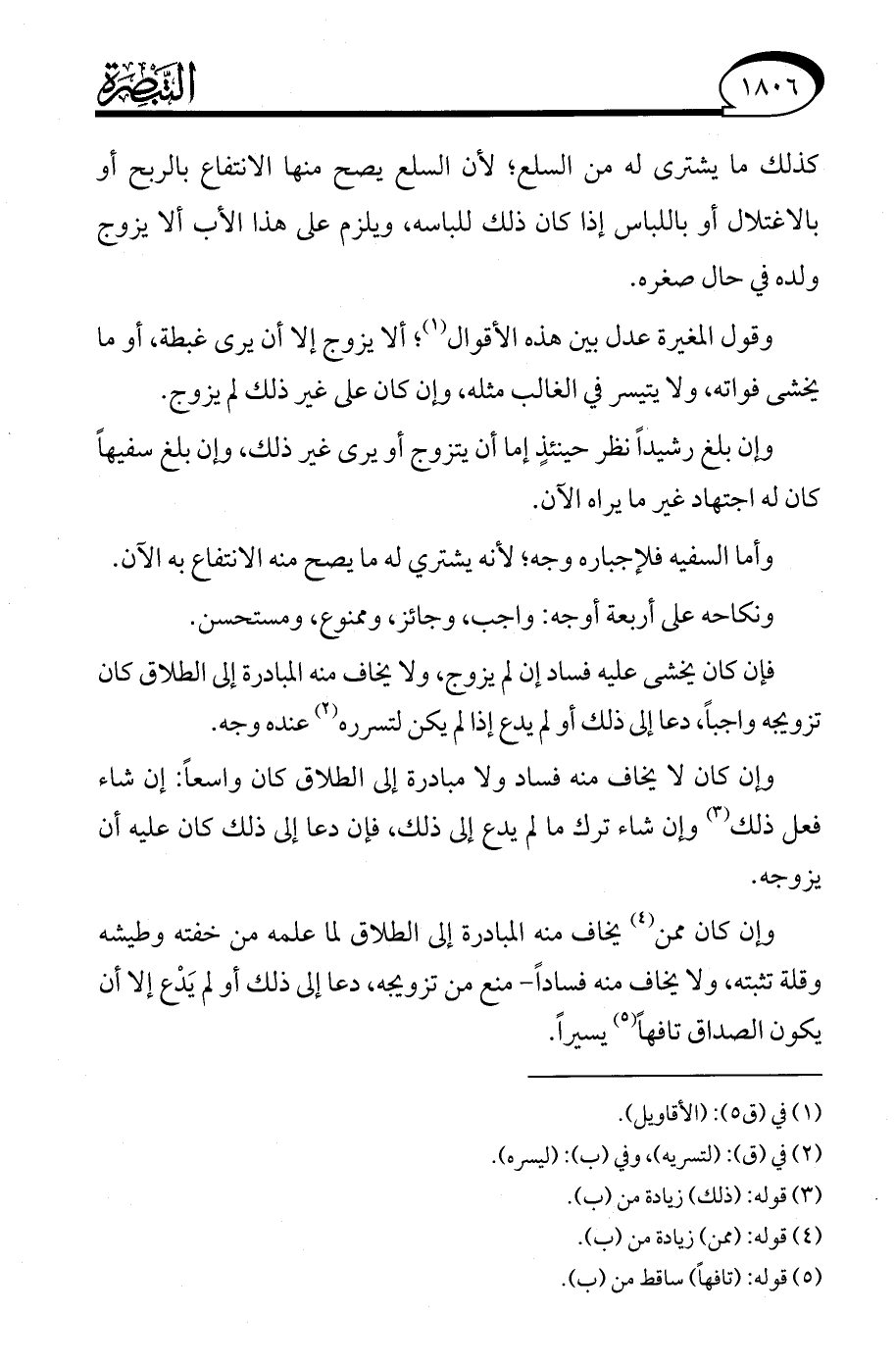 وإن كان ممن (¬4) يخاف منه المبادرة إلى الطلاق لما علمه من خفته وطيشه وقلة تثبته، ولا يخاف منه فسادًا- منع من تزويجه، دعا إلى ذلك أو لم يَدْع إلا أن يكون الصداق تافهًا (¬5) يسيرًا.