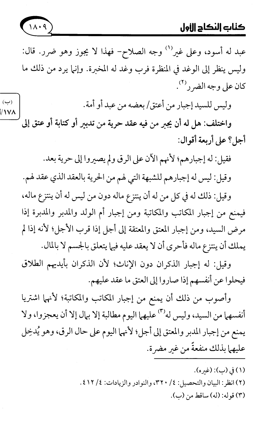 (¬2) انظر: البيان والتحصيل: 4/ 320، والنوادر والزيادات: 4/ 412.